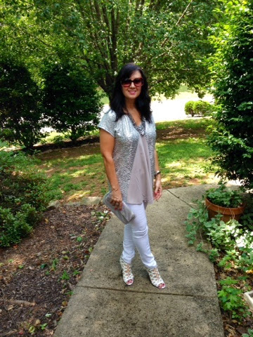 I bought this silver top months ago (like when it was freezing out) on major clearance, hung it in my closet and forgot all about it until yesterday when I was searching in my closet for something to wear that wasn't wintry. I haven't switched my wardrobe over yet from fall/winter to spring/summer. It's a job that will take a few days, especially with the weight loss because I'll have to try every single thing on, so I've been trying to make due with the few transition pieces I have and the new stuff I've added. Hopefully in the next week or so I'll hunker down and make the switch. It's actually easier editing someone else's closet than my own. It's kind of like that old story of the cobbler that didn't have any shoes...I'm the closet editor that has a closet that needs editing!